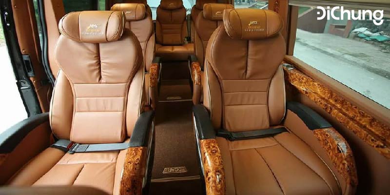 Nội thất xe được thiết kế chuẩn Limousine cao cấp với ghế ngồi bọc da cao cấp, tích hợp nhiều chức năng, có thể nâng hạ, ngả ra sau dễ dàng, đem lại cho hành khách cảm giác dễ chịu trong suốt hành trình.